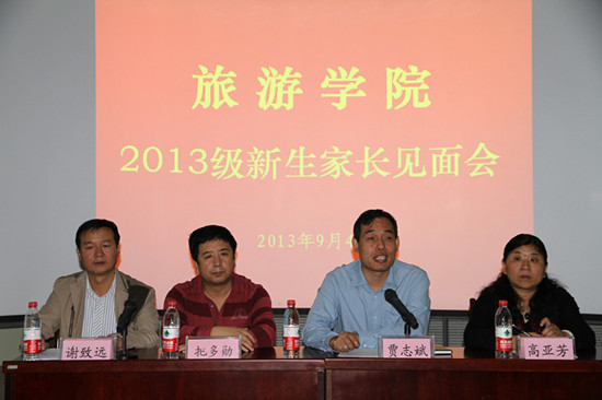 高亚芳副院长对学院四个本科专业课程方案、选课制、导师工作、学校教务管理信息系统在学生管理中的重要作用向家长做了说明。她详细介绍了我校“卓越文科人才培养计划”中旅游管理专业卓越旅游产业规划师基地班实施及学生遴选方式。