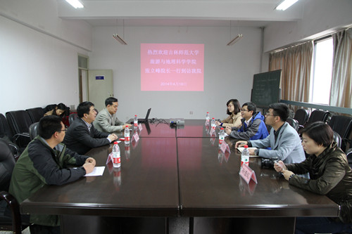 4月18日上午,吉林师范大学旅游与地理科学学院院长张立峰一行4人到访学院,就金宝搏官网旅游管理专业硕士(MTA)招生、培养方面进行考察交流。学院党委书记贾志斌、院长把多勋、副院长梁旺兵陪同调研并参加座谈会。