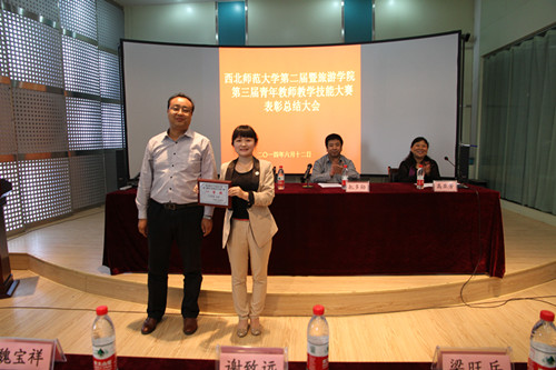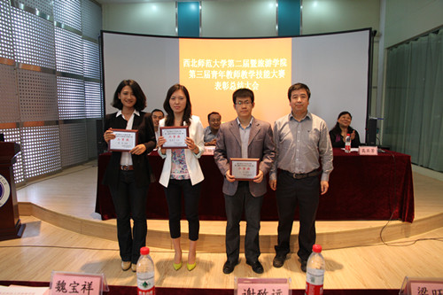 188BET金宝搏官网共有22名青年教师参加此次大赛(含北京广慧金通教育科技有限公司驻188BET金宝搏官网工作处教师3名),根据《2014年西北师大青年教师教学技能大赛的通知》要求及《188BET金宝搏官网第三届青年教师教学技能大赛规定》,通过公开公正的竞赛规程,最终评选出了9名获奖教师,分别是:一等奖任赟娟,二等奖夏冰、张亚芳、王力,三等奖王耀华、王艳林、万抒佳、陈娟娟、王耀斌。教务处与学院领导分别为获奖教师颁发了荣誉证书、奖金和奖牌。