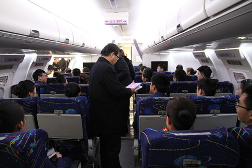 座谈会后,刘向兵副市长一行实地参观了学院民航CBT数字机房、化妆室和民航模拟舱等实训场地。