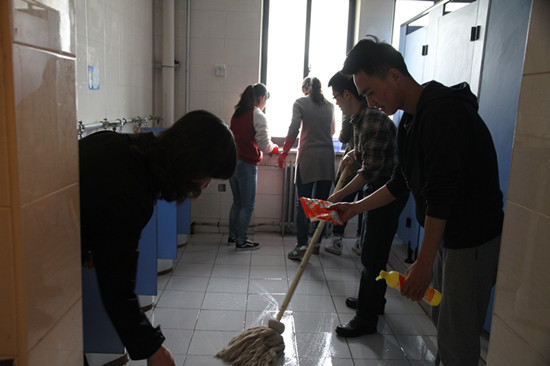 学院开展公共卫生间专项治理及公共办公环境美化活动