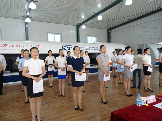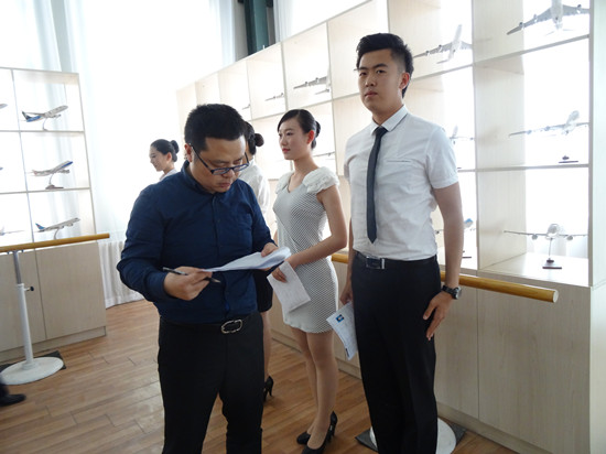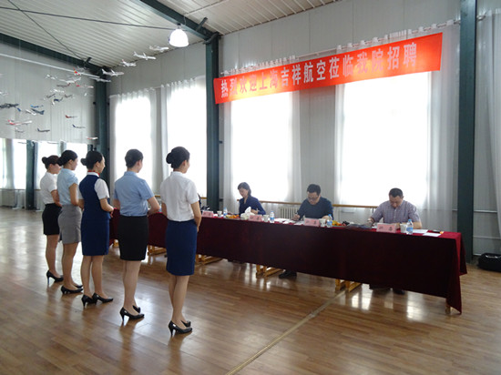 4月28日下午,应188BET金宝搏官网和北京广慧金通教育科技有限公司西北师大工作处邀请,上海吉祥航空公司来校组织专场招聘活动。上海吉祥航空公司服务总监张蔚、人力资源部总经理助理官利军一行5人在学校民航模拟舱实训基地进行现场招聘,金宝搏官网2012级音乐表演(空中乘务方向)专业95名学生参加了应聘,其中27人通过初试,通过初试学生最终参加公司体检、笔试合格后将正式签订录用合同。