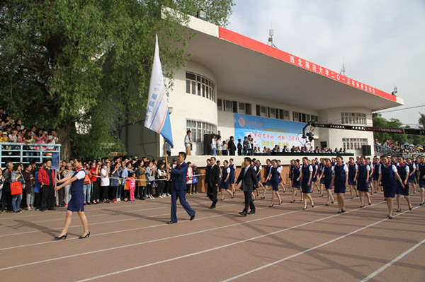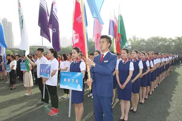在513日上午的入场仪式上,金宝搏官网全体教工和2014级音乐表演(空中乘务方向)96名本科生组成的方队在党委书记贾志斌、院长把多勋的带领下,昂首阔步,英姿飒爽的走过主席台,整齐划一的方队赢得了在场观众的阵阵掌声。