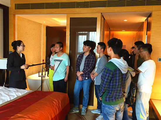 在实践课堂上,高亚芳副院长介绍了此次活动的目的,主要是让金宝搏官网学生更直观地了解酒店环境、企业文化、运营机制,了解酒店职业经理人的素质和能力要求,同时也了解就业一线需求,希望通过此次参观学习为同学们选择专业方向提供参考。本次参观教学活动分三个环节,首先由兰州皇冠假日酒店人事部杨瑛经理和培训部主管为同学们介绍了洲际集团的发展历史与旗下的酒店品牌。随后进入问答环节,培训部主管及供职酒店的我校优秀毕业生吴雪向大家详细讲解了成为一名合格的酒店人应具备的素质与技能。同学们就酒店工作及酒店人职业发展路径与培训部各位员工进行了交流,解答了同学们提出的相关专业类问题,并鼓励大家努力学好当前专业知识,争取成为洲际集团的一员。兰州皇冠假日酒店业主代表赵广欣经理也来到会议室和大家进行了交流并向大家抛出了橄榄枝,欢迎各位同学学成后加入兰州皇冠假日这个大家庭。最后。师生们跟随前厅部主管参观了各类客房、会议场所、餐饮设施、大堂吧等酒店公共营业区域,并对其职能进行了了解。活动结束后,高亚芳副院长就合作事宜与赵总进行了进一步沟通。双方就今后在资源共享、实践基地建设等方面开展更为广泛的合作交流达成了共识。