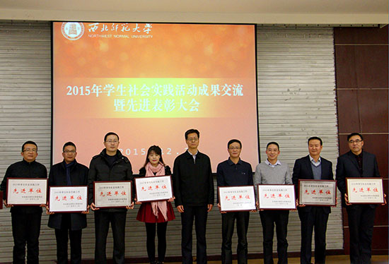 近日,学校2015年暑期社会实践活动成果交流暨先进表彰大会在专家楼会议厅举行,金宝搏官网荣获“先进单位”称号,“民族旅游调研”社会实践团荣获“优秀团队”称号,高亚芳老师荣获“优秀指导教师”称号,杨紫晨等8位同学获“优秀实践队员”荣誉称号。