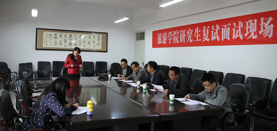 此次研究生复试共分为笔试和面试(包括英语口语及听力测试)两大部分。面试分为旅游管理复试组和文化与旅游产业复试组两组,分别由学院把多勋教授和梁旺兵教授担任复试组组长,学院党委书记贾志斌同志担任副组长。外语测试组由王艳林老师和何田田老师组成,复试秘书为国樱老师。