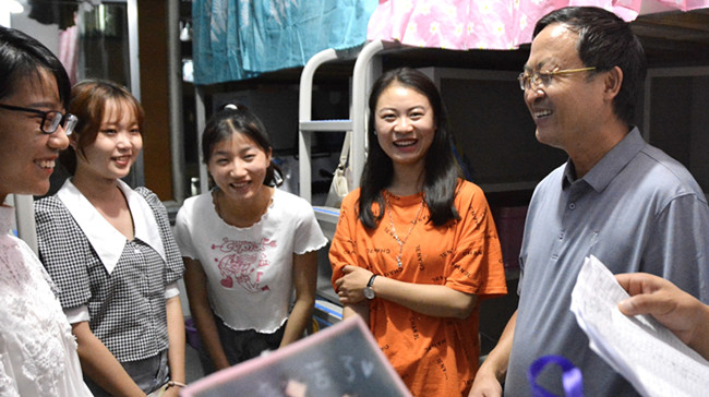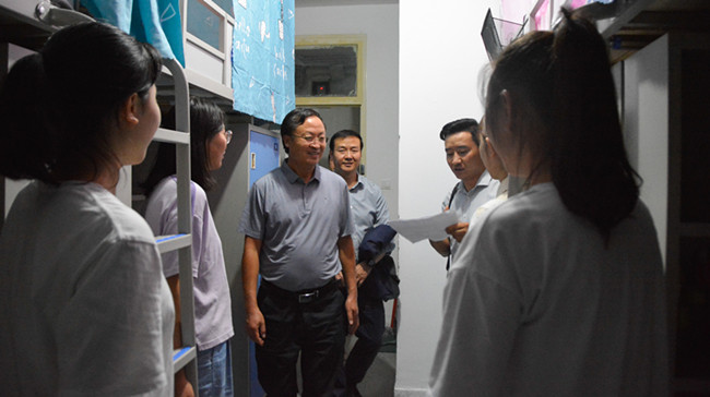 2020年9月10日晚,188BET金宝搏官网进行了2020级新生开学后的第一次走访查宿。党委书记李发舜、院长把多勋、副书记谢致远、副院长王耀斌、王力、万建斌等学院领导、新生各班班主任和辅导员老师深入学生公寓探望2020级新生。