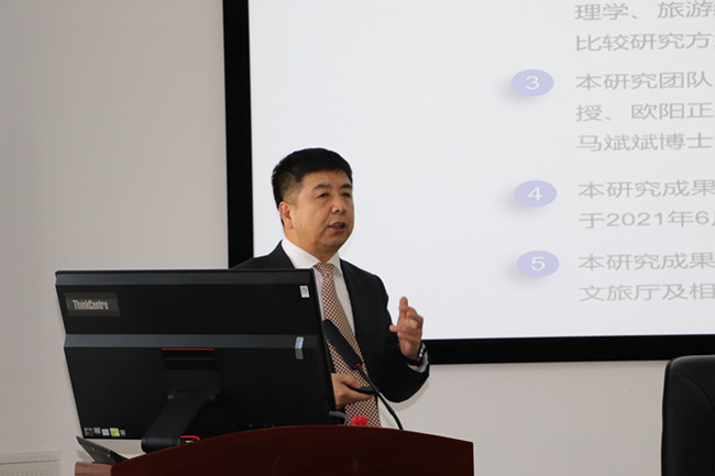把多勋代表课题组从课题研究的背景、学理、研究目标与领域、战略架构、重点任务、研究的基本框架与主要研究内容等方面进行了汇报。甘肃社会科学院党组成员、副院长王俊莲,兰州文理学院教授牛海桢,甘肃公航旅文化教育科技有限公司副董事长刘永平等专家一致认为,该课题研究内容全面系统,研究条理清晰,框架结构安排合理,课题组拥有很强的研究力量和很好的研究基础,同时还就课题的研究方法、研究思路及具体问题提出了建设性意见。