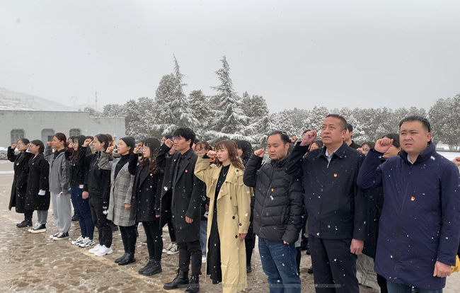 迎着凛冽的风雪,浸湿了鞋袜、模糊了视线、冰寒了双手,但不会阻挡住师生们对革命烈士的无限哀思和深情缅怀!天幕低垂,松柏苍苍。纪念广场上,巍峨的人民英雄纪念碑庄严矗立,“人民英雄永垂不朽”几个镏金大字刚劲有力、熠熠生辉。师生代表整齐列队,脱帽肃立。上午9时30分,向人民英雄纪念碑敬献花篮仪式正式开始,伴随着《义勇军进行曲》,全场高唱中华人民共和国国歌。激昂的旋律,响彻烈士陵园,深深感染着在场每一个人。