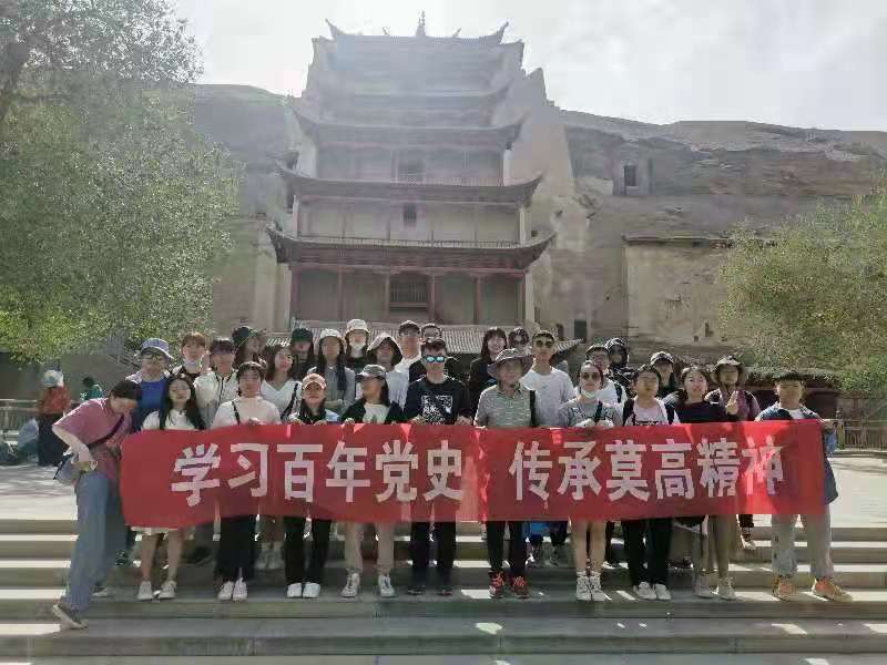 2021年是中国共产党建党100周年,借开展研学活动之际,2021年6月3日至6日,金宝搏官网云亭教授冯玉新老师带领2019级旅游管理卓越班学生及3名研究生前往敦煌开展了《旅游创意与策划案例分析》课程实践活动及“学习百年党史,传承莫高精神”党史学习教育。