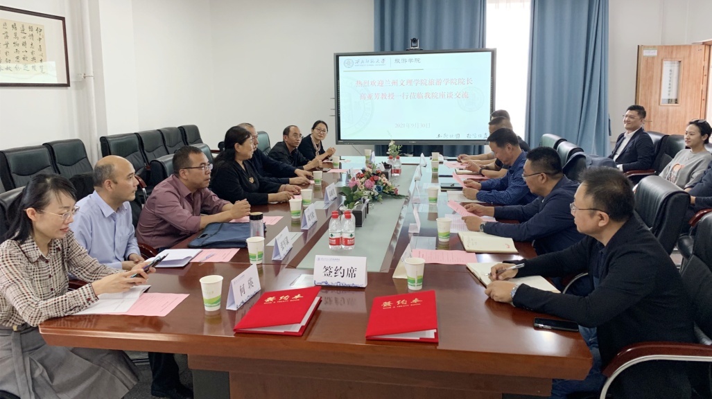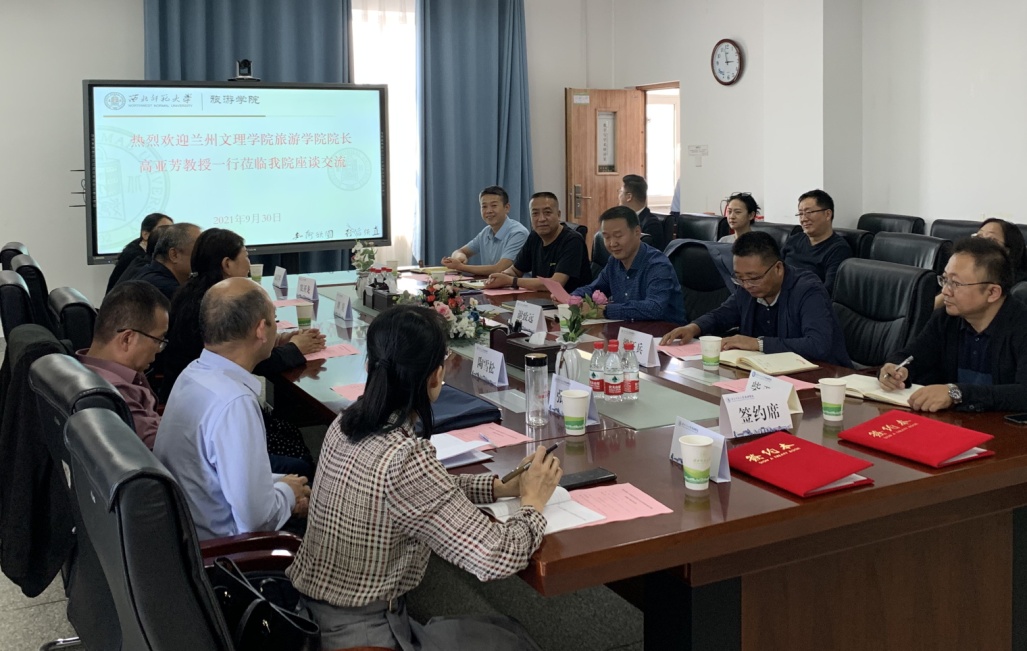 高亚芳院长对兰州文理学院188BET金宝搏官网的概况和发展规划做了简要说明,同时表达了对188BET金宝搏官网的关注,希望能够和学院在专业建设、社会服务、人才培养等领域开展全方位的交流合作,共同为甘肃的文化旅游发展做出更大贡献。双方领导班子成员及各系所中心负责人也彼此进行了深入的交流座谈。