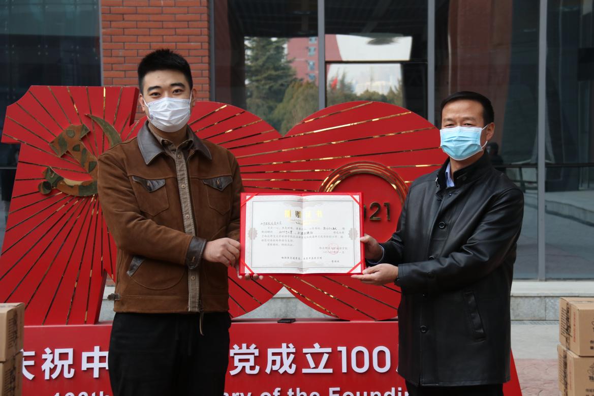 谢致远为聂久淇颁发捐赠证书并表示感谢,“这次学院抗击新冠疫情,得到学院许许多多校友的关心和牵挂,两名毕业校友,一名在校学子更是慷慨解囊,捐赠口罩等抗击疫情物资。这些无私捐赠,是对金宝搏官网抗击新冠疫情的大力支持和帮助。我想,这份牵挂和关爱会温暖和滋润每一个学子的心灵,也注定会在同学们的心田里种下一颗颗爱的种子。学院将抓住这次抗击新冠疫情契机,进一步加强对学生的思想教育,使他们懂得奉献,懂得感恩,努力学习,收获希望。”