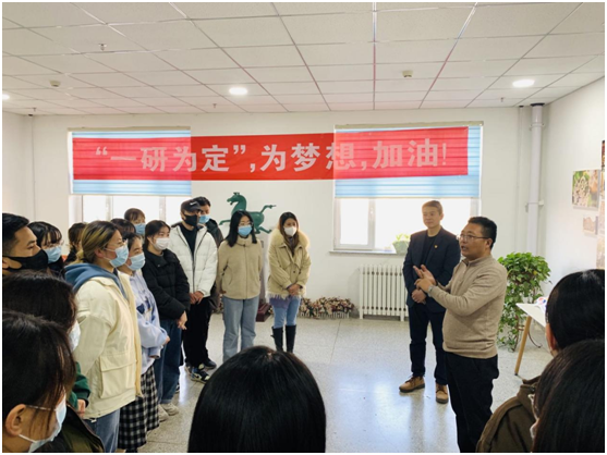梁旺兵代表学院向正在准备考研的学子表达慰问,鼓励大家在最后的时间里积极准备,抓重点复习,争取最后的胜利。他说到,考研是大学生人生奋斗征程中的又一场追梦,是一场智力与体力的比拼,是一次意志与毅力的挑战,大家要以良好的状态、坚韧不拔的精神和科学的方法做最后的考研冲刺,不畏艰难困苦,向着终点冲刺攀登,实现考研梦想。最后,梁旺兵还为2022届考研学子进行了分类指导和答疑解惑。