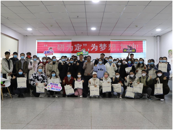 与会领导和老师向每位考研学生发放了考研礼包。礼包虽小,却承载着学院对2022届考研学子的满满祝福,祝愿同学们多一份踏实与信心,在最后的冲刺阶段里勇往直前,奔赴梦想,无畏风霜,以“今年一‘研’为定,明年一定‘研一’”的豪情奔赴自己的梦想。