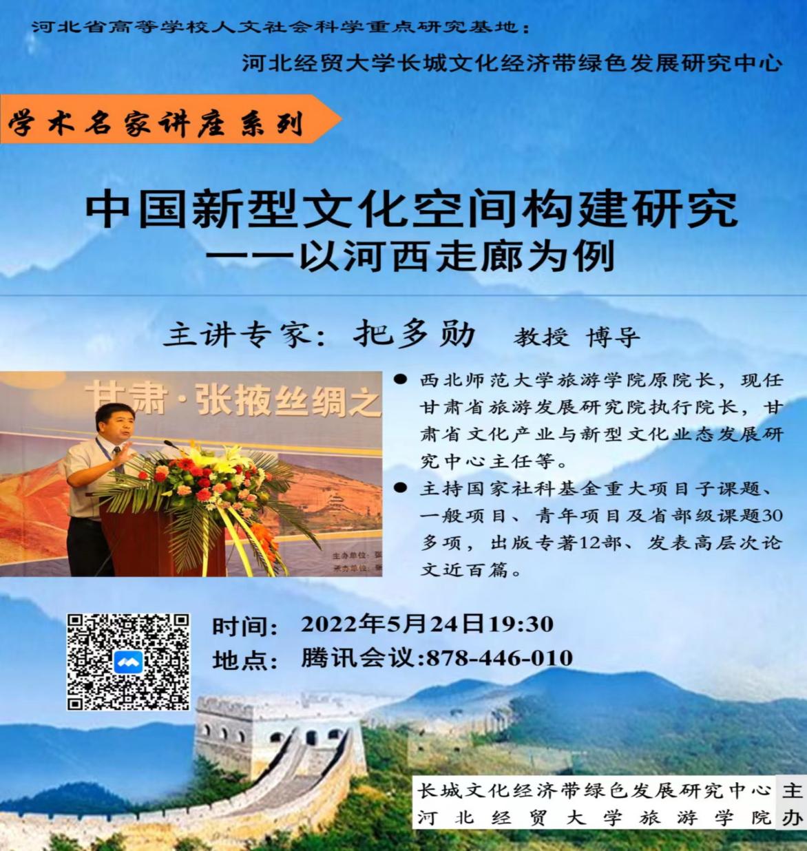 近日,河北经贸大学承担的河北省人文社科重点研究基地“河北省长城文化经济带绿色发展研究中心”正式成立,金宝搏官网把多勋教授被聘为中心专家组成员,并为河北经贸大学188BET金宝搏官网做了“中国新型文化空间构建研究”的学术报告。