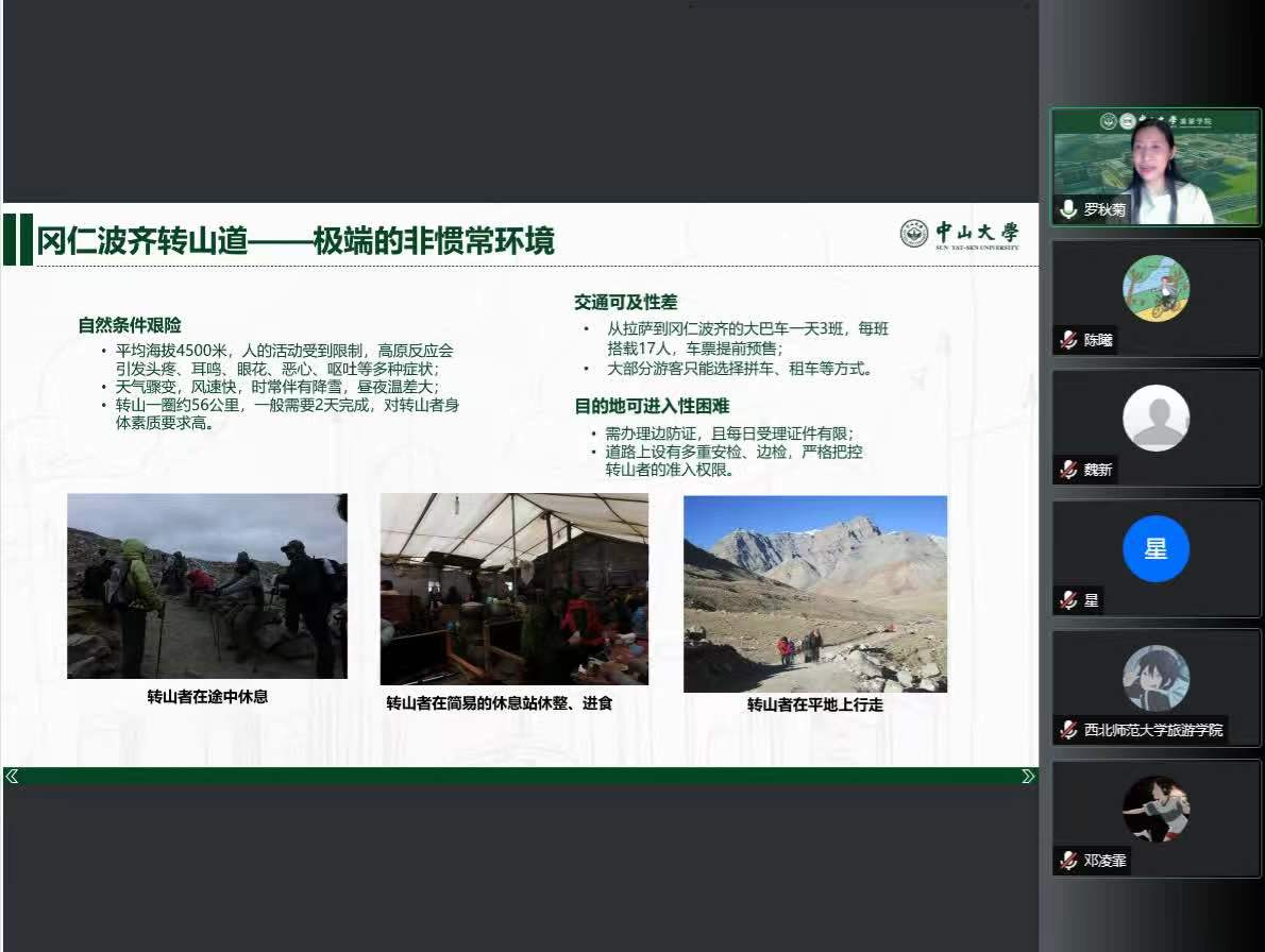 2022年6月16日晚,应学院邀请,中山大学188BET金宝搏官网副院长、教授、博士生导师罗秋菊教授为金宝搏官网师生作关于“旅游研究选题的逻辑起点与实践”线上学术报告,报告由副教授武克军主持,学院师生近150余人参加了本次报告会。