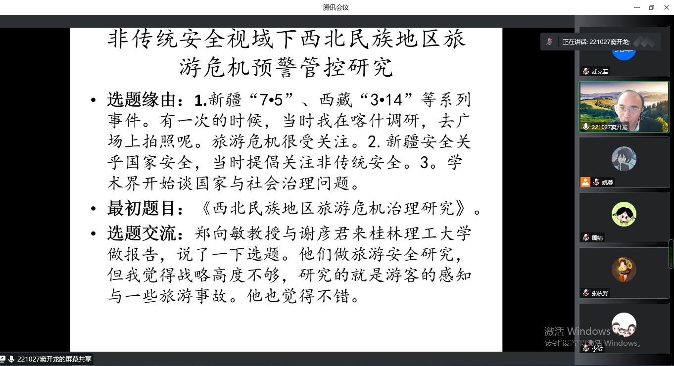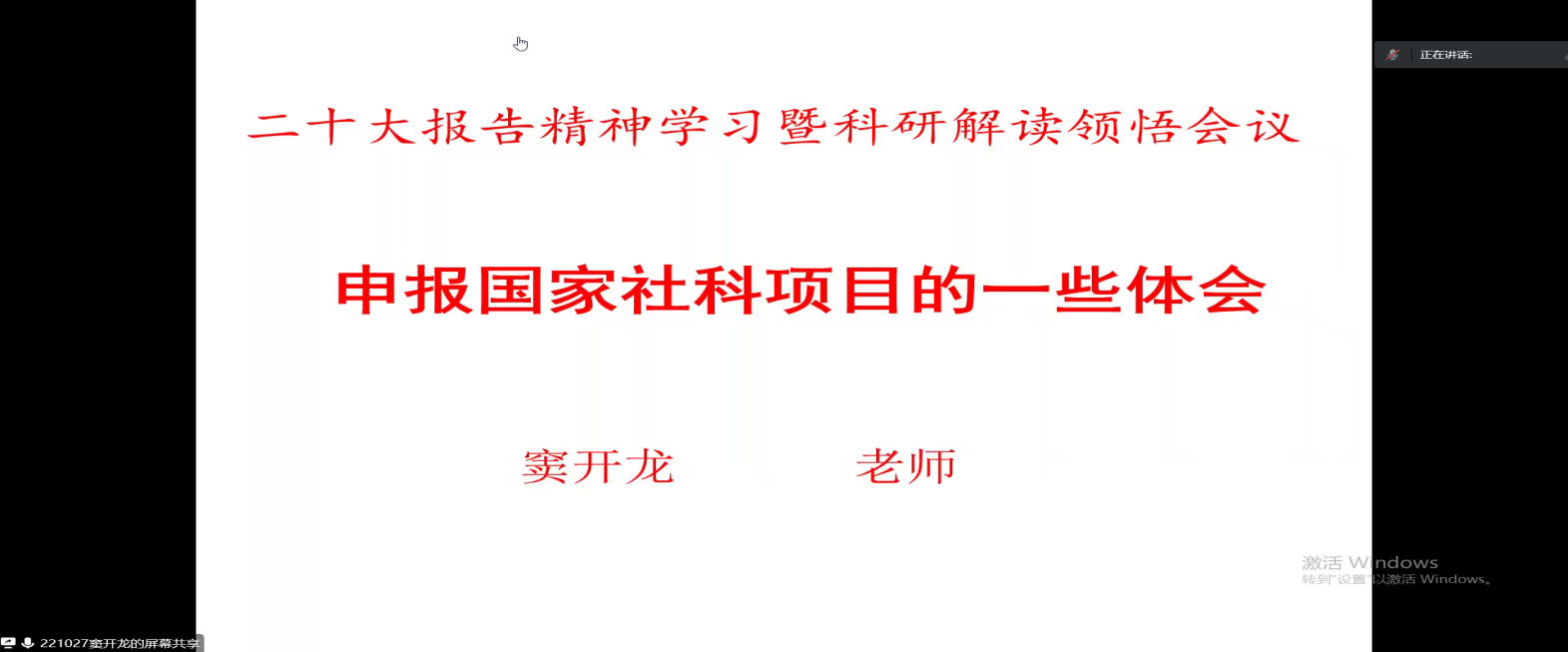 2022年10月20日,应金宝搏官网邀请,兰州大学博士,陕西师范大学博士后,四川大学博士后,北京大学高级访问学者。兰州文理学院副教授窦开龙为金宝搏官网师生作题为“国家社科基金项目申报体会”的线上学术报告,报告由武克军副院长主持。