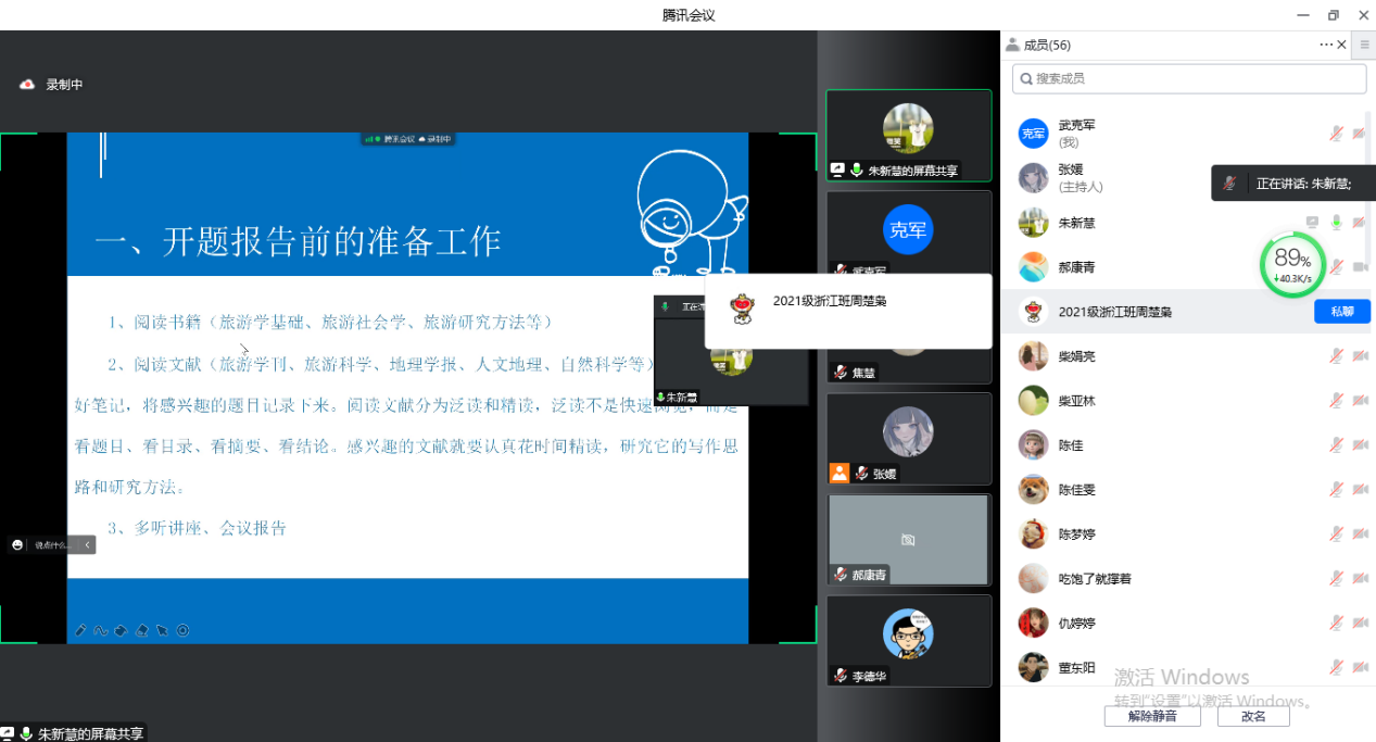 2022年10月27日19时,金宝搏官网旅游安全风险团队研究生组会在线举行。本次组会主要内容为2022硕士已经完成开题报告的研究生分享自己的经验。本次会议由张媛同学主持。同时受邀参会指导的人员有柴亚林副院长、安智海老师、包军军老师、刘婵老师、赵玉琴老师和武克军老师,组会参与的老师、团队研究生以及部分本科生,合计共57人。