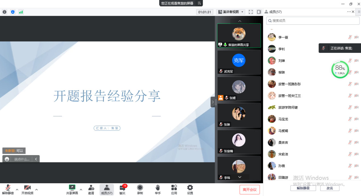 (一)焦慧同学分享了自己的开题报告经验,从查阅文献、撰写报告以及开题过程三个方面展开。