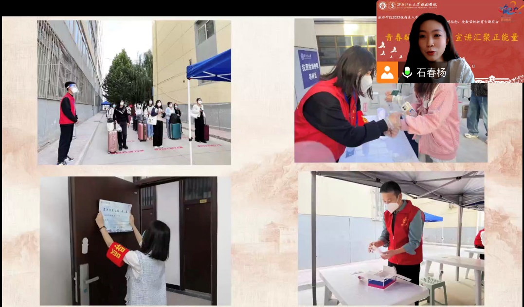 在喜迎党的二十大胜利召开之际,为进一步激发青年学子爱党爱国的强烈热情和奋发有为的昂扬风貌,10月15日188BET金宝搏官网举办2022级新生入学教育之“青春献礼二十大,宣讲汇聚正能量”线上主题宣讲活动,本次活动邀请到188BET金宝搏官网石春杨、梁钰薇、陈蕾三位理论宣讲员为2022级新生做线上主题宣讲,学院党委副书记戴小武老师、全体专职辅导员与2022级全体新生共同参会。