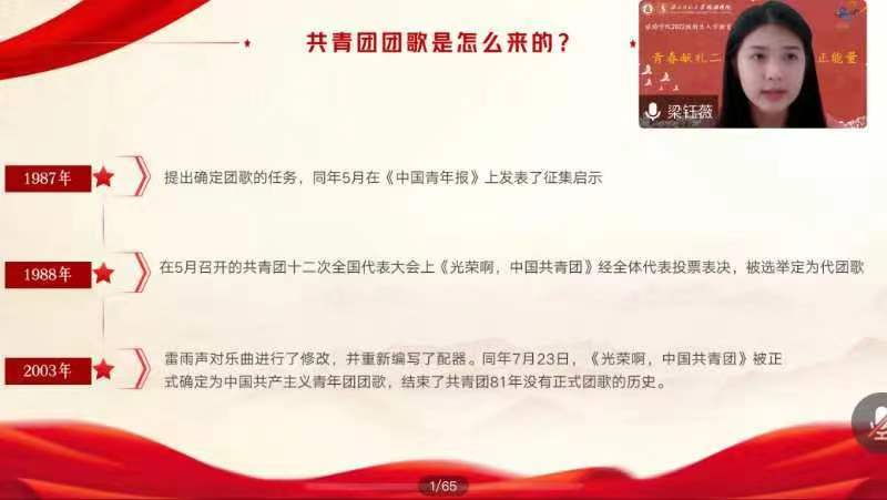 青年是全社会最积极、最有生机的力量,国家的希望在青年,民族的未来在青年,中国青年是中华民族伟大复兴事业的希望所在。此次线上主题宣讲活动既是一堂激发金宝搏官网青年学子爱党爱国热情的主题团课,又是展现青年学子朝气蓬勃、奋发向上青春风采的重要实践,188BET金宝搏官网全体师生将以奋发向上、实干担当的良好状态,勤学善思、超越自我的精神境界,请党放心、强国有我的远大抱负,喜迎党的二十大胜利召开。