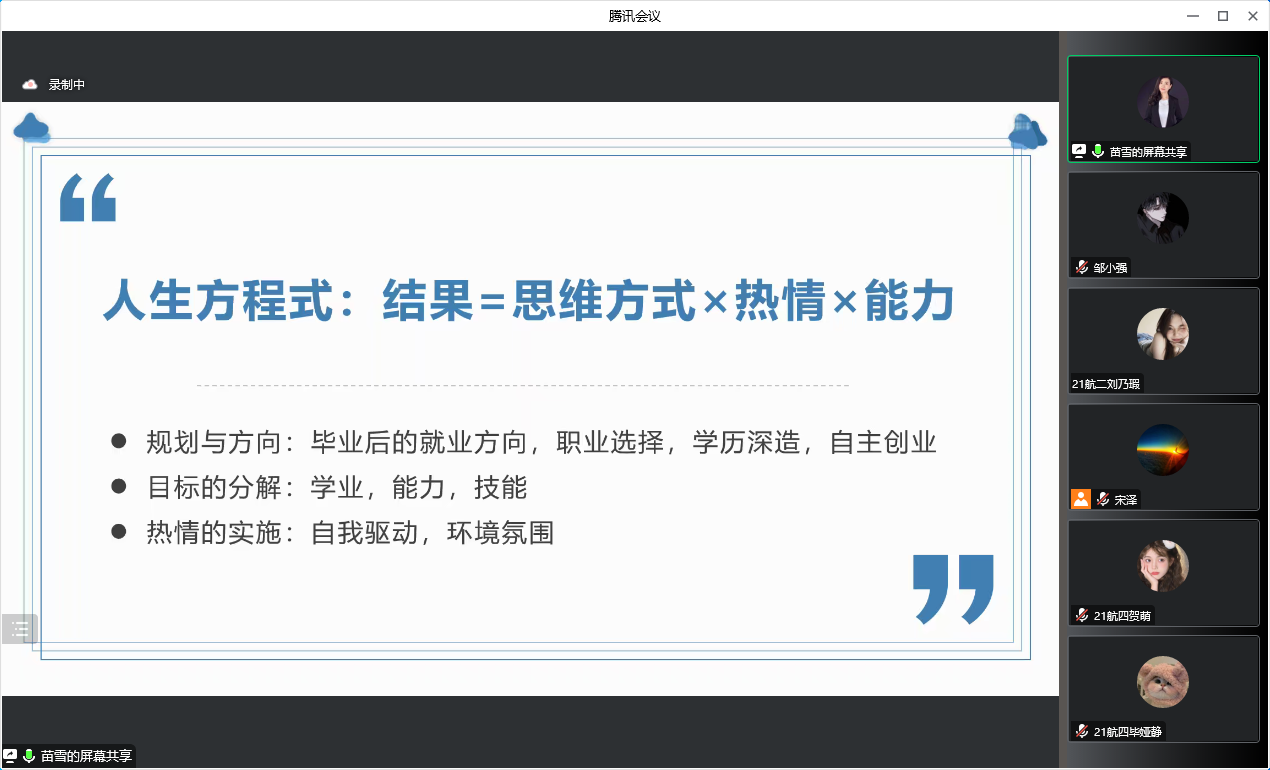 最后苗老师运用人生方程式生动形象的概括出内在核心驱动,给予在座每位深刻思考。