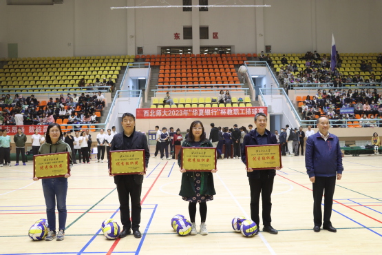 4月19日,由校工会、体育学院主办的“华夏银行”杯西北师大教职工排球赛在体育馆落下帷幕。金宝搏官网教师精心组织、积极训练、勇于拼搏、团结友爱,经过多场紧张激烈角逐,学院教职工的体育运动风采得到全面展示和提升,团队凝聚力进一步增强,并获得优秀组织奖。