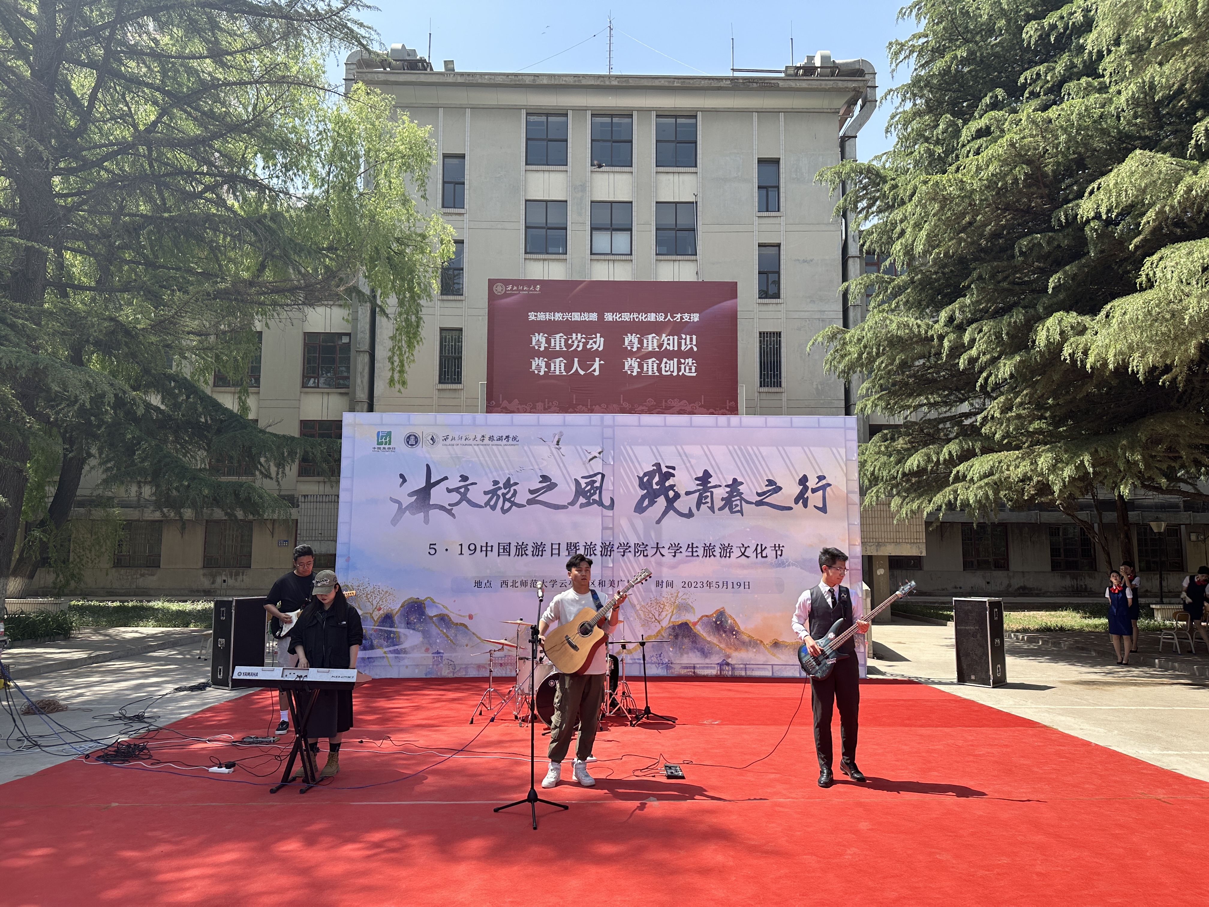 开幕式上,雷龙强同学进行《大学生文明旅游倡议》,188BET金宝搏官网各专业同学进行民航礼仪操、客舱安全演示表演以及兰州黄河风情线水车博览园、兰州白云观、中山桥等沿线8大景点讲解,集中展示旅游专业学生实践能力和综合素质。最后,由188BET金宝搏官网吉他社深安乐队带来青春洋溢的歌曲《兰州兰州》《New Boy》,赢得现场观众阵阵掌声和喝彩声。