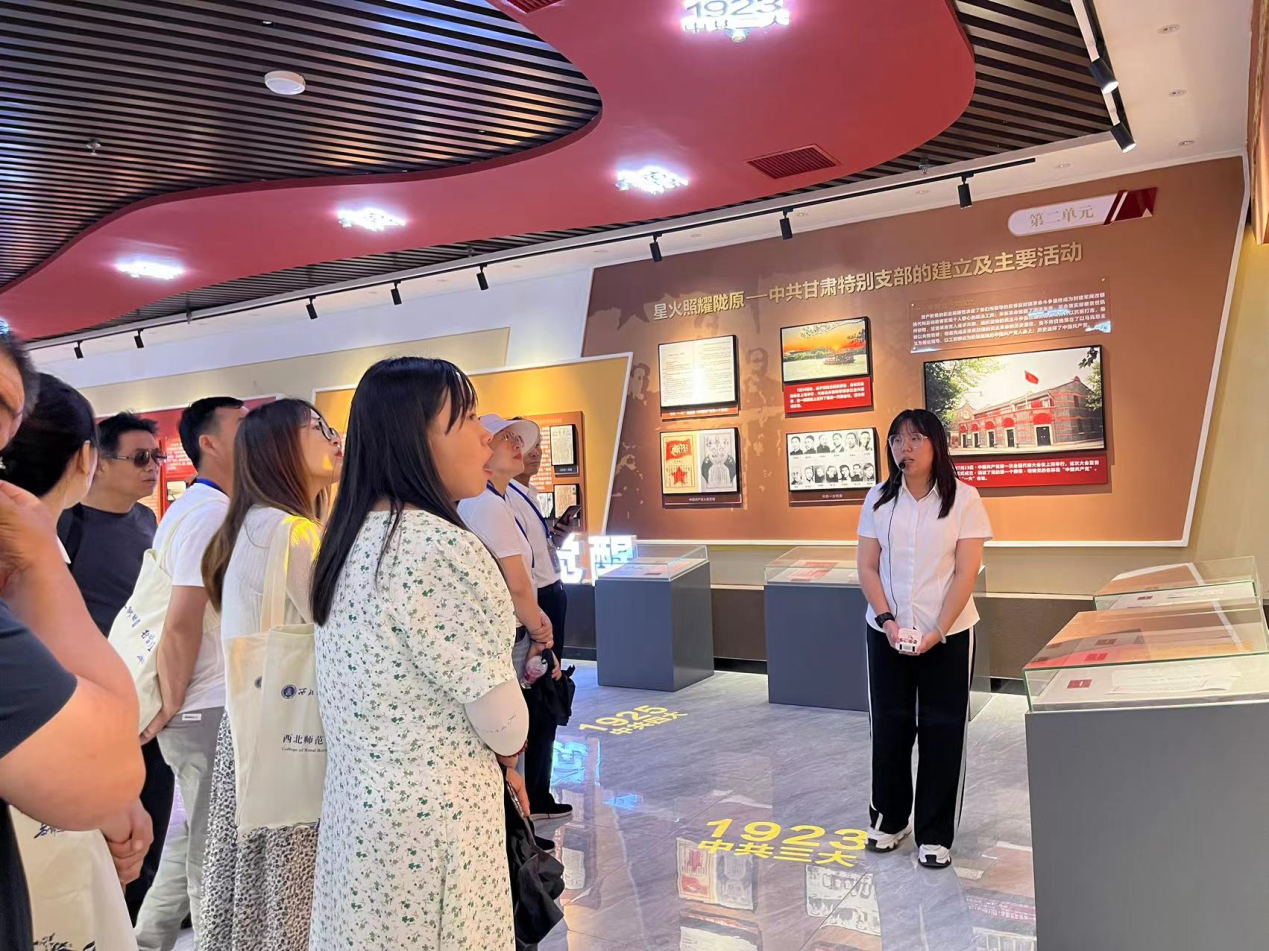 7月4日上午,在欧阳正宇老师和窦雅丽老师的带领下,平凉市专题培训班学员一起来到甘肃省兰州市榆中县的栖云小镇,在这里带领学员们参观栖云小镇的民宿管理模式、轰趴馆运营模式,对小镇特色建设和内涵进行深入了解,对栖云小镇的红色党员纪念馆进行参观,对小镇特色民俗馆等进行参观学习。