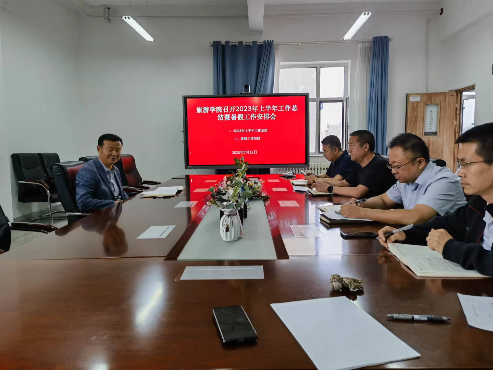 2023年7月13日上午10:00188BET金宝搏官网全体教职工在文科实训楼1101会议室召开2023年上半年工作总结暨暑假工作安排会。学院领导和全体教职工参加会议。