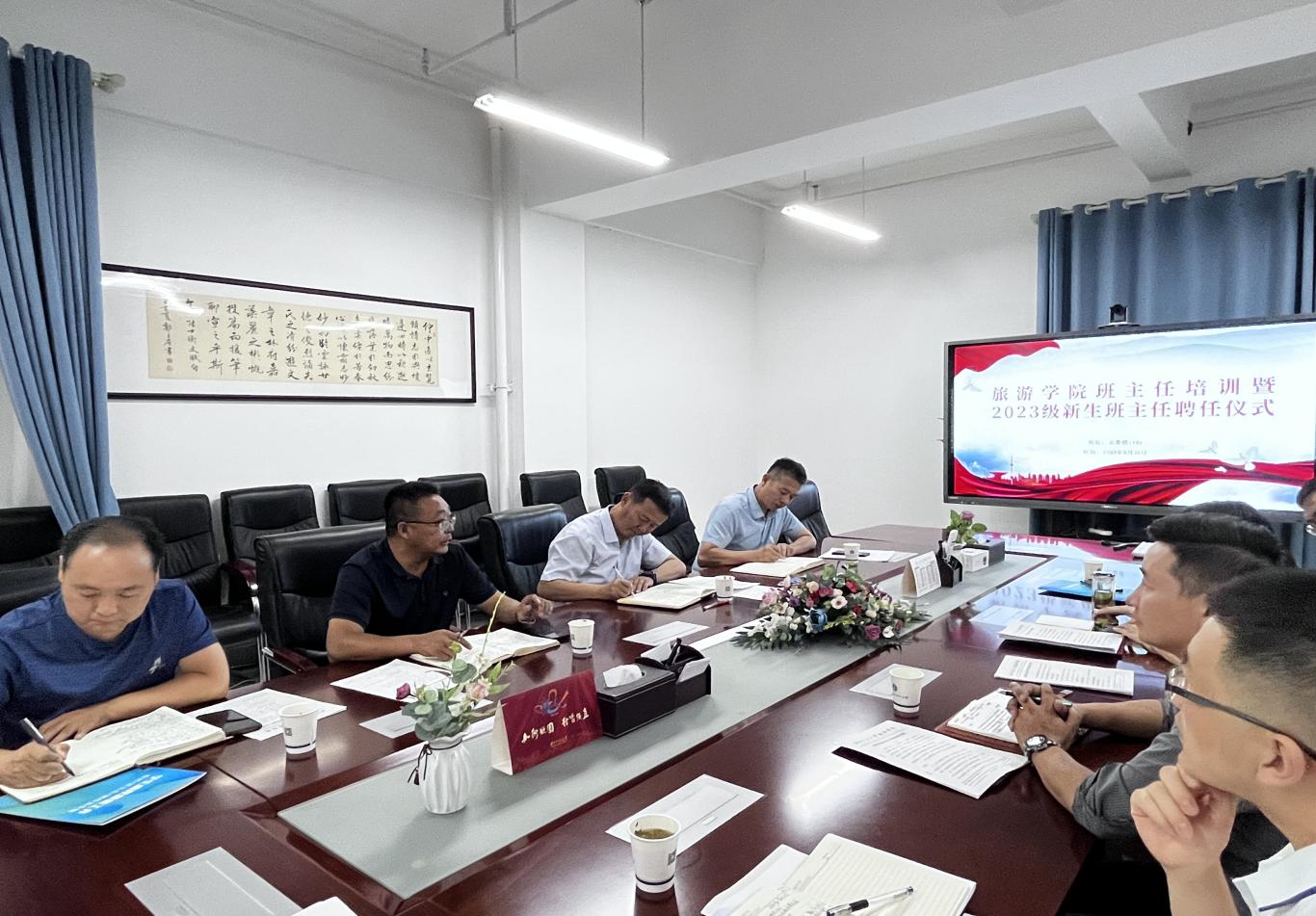 8月31日晚,188BET金宝搏官网班主任培训暨2023级新生班主任聘任仪式在云衢楼1101会议室举行。学院党委书记谢致远、院长梁旺兵出席并讲话。副院长武克军和全体班主任、空乘工作站及专职辅导员共30余人参加会议。党委副书记戴小武主持会议并解读《188BET金宝搏官网班主任工作量化考评细则》。