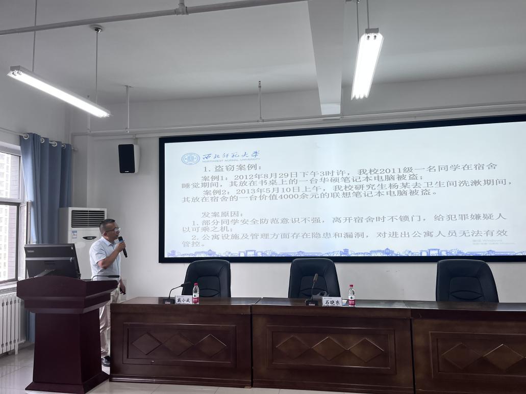 石晓东首先讲解了安全教育工作的内涵,旨在让同学们形成正确的安全观念,理解安全的目的与意义;随后选取了盗窃、溺水、人身伤害、火灾、交通事故五个方面的典型案例,通过每个真实反面案例警示同学们在生活中要树立自我防范意识,把不安全不稳定因素消灭于萌芽之中,防微杜渐;随后,又以近年来兴起的网络电信诈骗话题和安宁区近期的几起典型诈骗案例为同学们打上了入学反诈的“预防针”;最后讲述校园电诈案件发案情况及防范策略,增强了学生辨别电信网络诈骗的“免疫力”,有效筑牢了校园安全“防护线”。