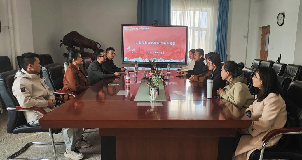 2023年11月10日,甘肃民族师范学院一行来188BET金宝搏官网举行人才引进宣讲及交流活动。学院党委副书记戴小武,甘肃民族师范学院历史文化系副主任赵进国、张红霞,教师郑飞,学院辅导员及部分旅游管理学硕和专硕毕业生参加会议,戴小武主持会议。