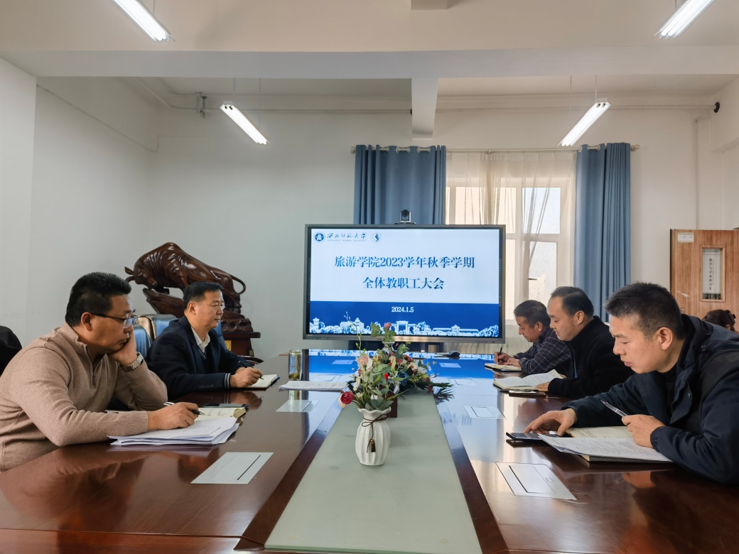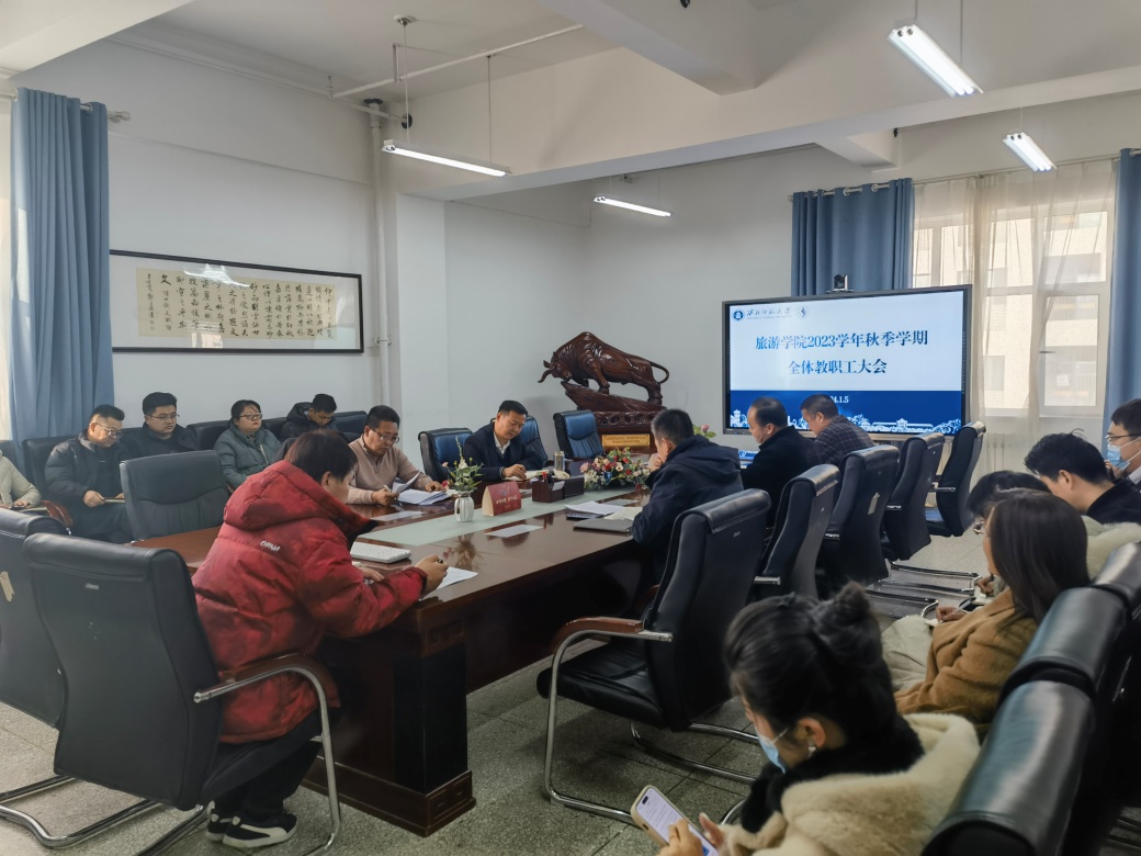 1月5日,188BET金宝搏官网全体教职工在文科实训楼1101会议室召开2023-2024学年秋季学期工作总结会暨寒假工作安排会,学院领导和全体教职工参加会议。会议由党委书记谢致远主持。