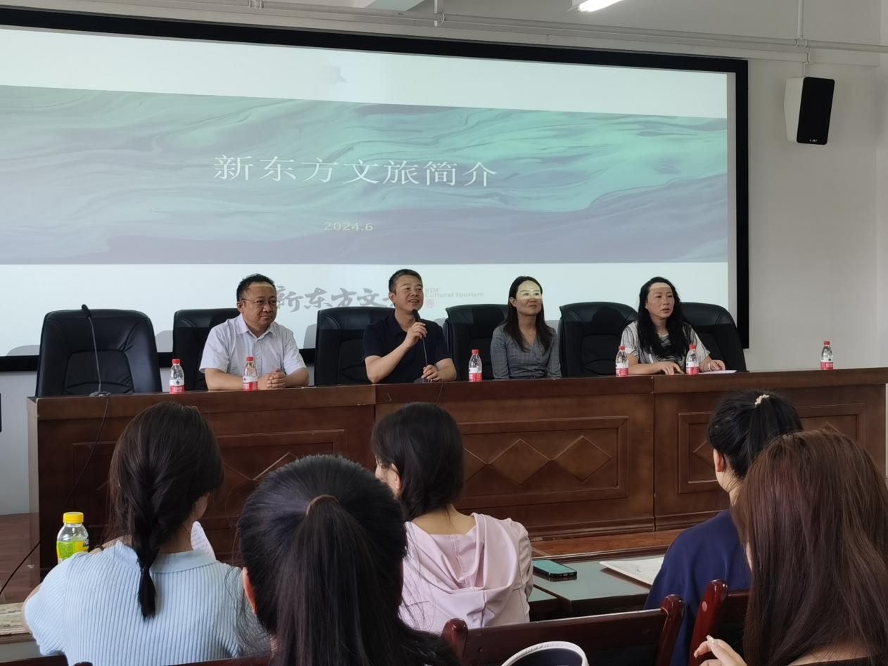 2024年6月14日下午,新东方兰州学校人力资源总监朱丽华,招聘主管白宇麒、文旅讲师主管高祥、招聘专员崔雅雯、文旅计调邓建军一行前往188BET金宝搏官网开展就业专场招聘,学院副院长柴亚林、党委副书记戴小武、实习主任陈娟娟、辅导员赵新帮以及2020级、2021级和2022级近150名本科生参加。