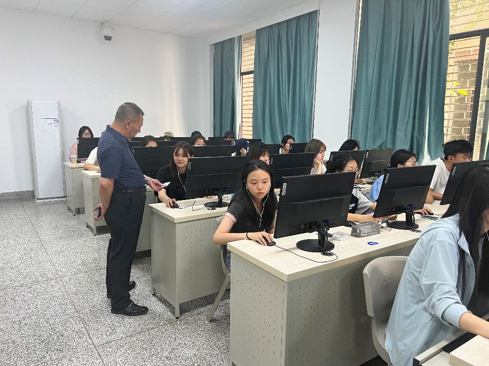 赵兴虎书记一行前往致公楼考点,重点对2023级旅游管理专业和航空服务艺术与管理专业本科生的大学英语考场进行的巡考检查,认真检查了监考教师的工作状态,核验考生相关证件,强调了考试纪律的重要性,要求学院监考教师严格遵守监考相关规定,确保考试顺利进行。