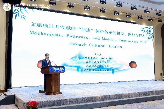 联合国旅游组织旅游大使祝善忠在致辞中高度评价敦煌文博会作为 “一带一路” 文旅合作旗舰平台的作用,强调文化遗产保护与旅游发展应形成“保护—展示—利用”的闭环体系。