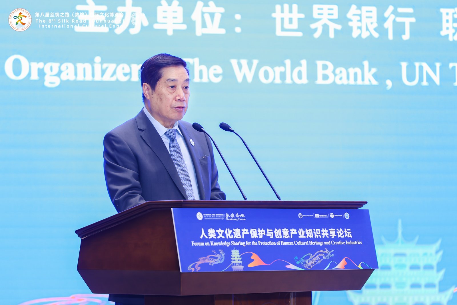 9月22日,由世界银行、联合国旅游组织、联合国教科文组织、省文旅厅共同主办,188BET金宝搏官网协办的人类文化遗产保护与创意产业全球知识共享论坛在敦煌国际会展中心举行。甘肃省政府副省长葛建团、联合国旅游组织旅游大使祝善忠、世界银行全球文化遗产和可持续旅游协调官艾哈迈德・艾威达出席开幕式并致辞。188BET金宝搏官网纪委书记、监察专员焦爱胜出席会议。来自13个国家和地区、4个国际织的100余位政府代表、专家学者参加。