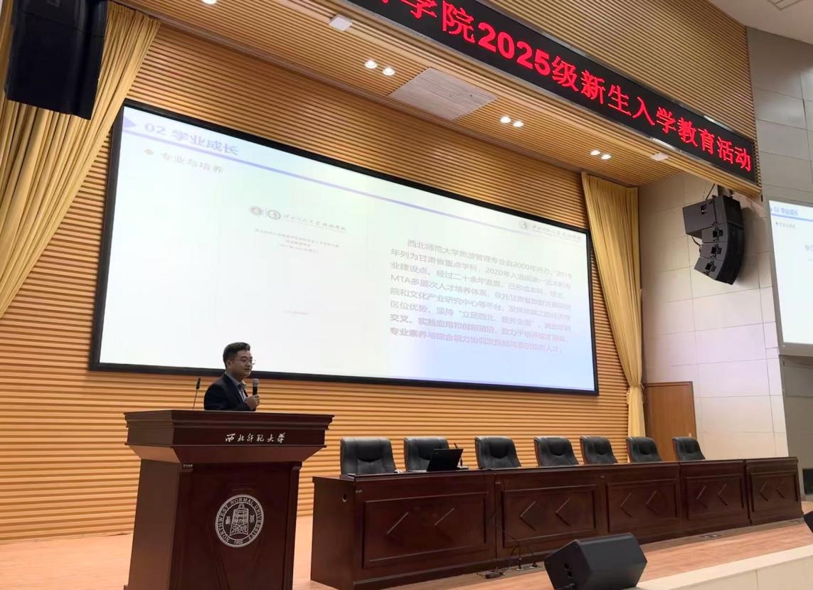 首场宣讲以“启航行动——188BET金宝搏官网人才培养”为主题,188BET金宝搏官网包军军老师系统解读了188BET金宝搏官网本科人才培养方案的核心内容,包括课程体系设置、实践教学安排、专业发展方向等信息。他结合旅游行业发展趋势与优秀校友案例,为新生梳理了四年学业规划的具体路径,并给出针对性建议,鼓励同学们在未来四年大学学习过程提升创新创业能力,注重综合发展。