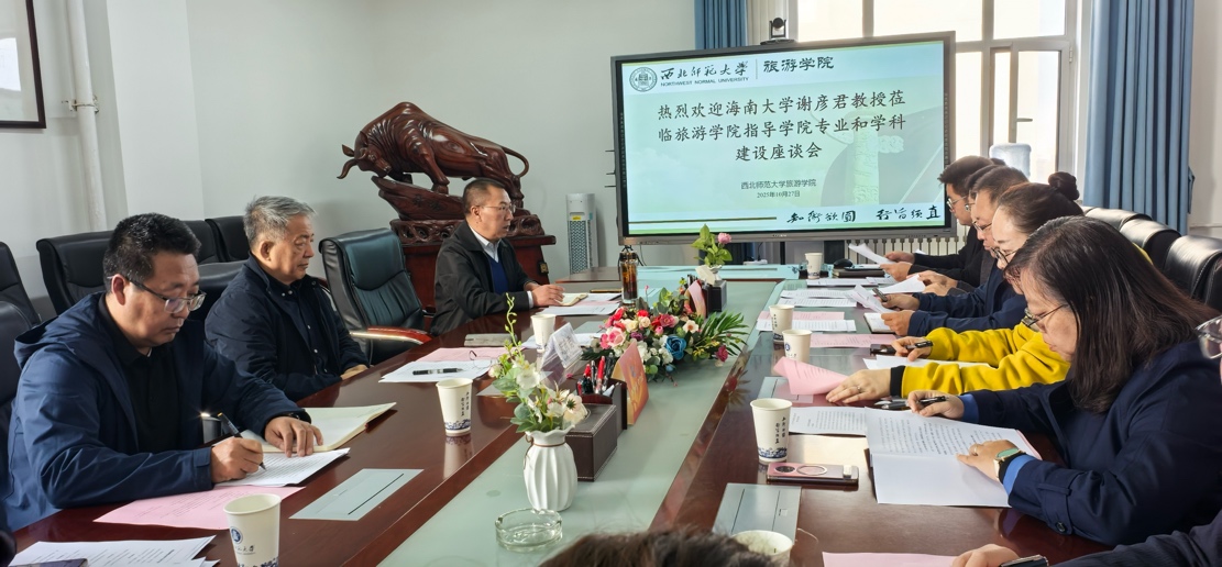 10月27日,188BET金宝搏官网举行专业和学科建设座谈会,著名旅游学者海南大学谢彦君教授应邀莅临参会。学院领导班子成员、各专业负责人、青年教师代表共同参加交流研讨。