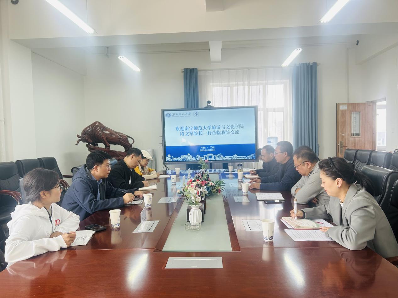10月29日下午,南宁师范大学旅游与文化学院段文军院长一行来金宝搏官网开展专题交流调研活动。座谈会由金宝搏官网梁旺兵院长主持,各分管的副院长及系主任参加了座谈会。
