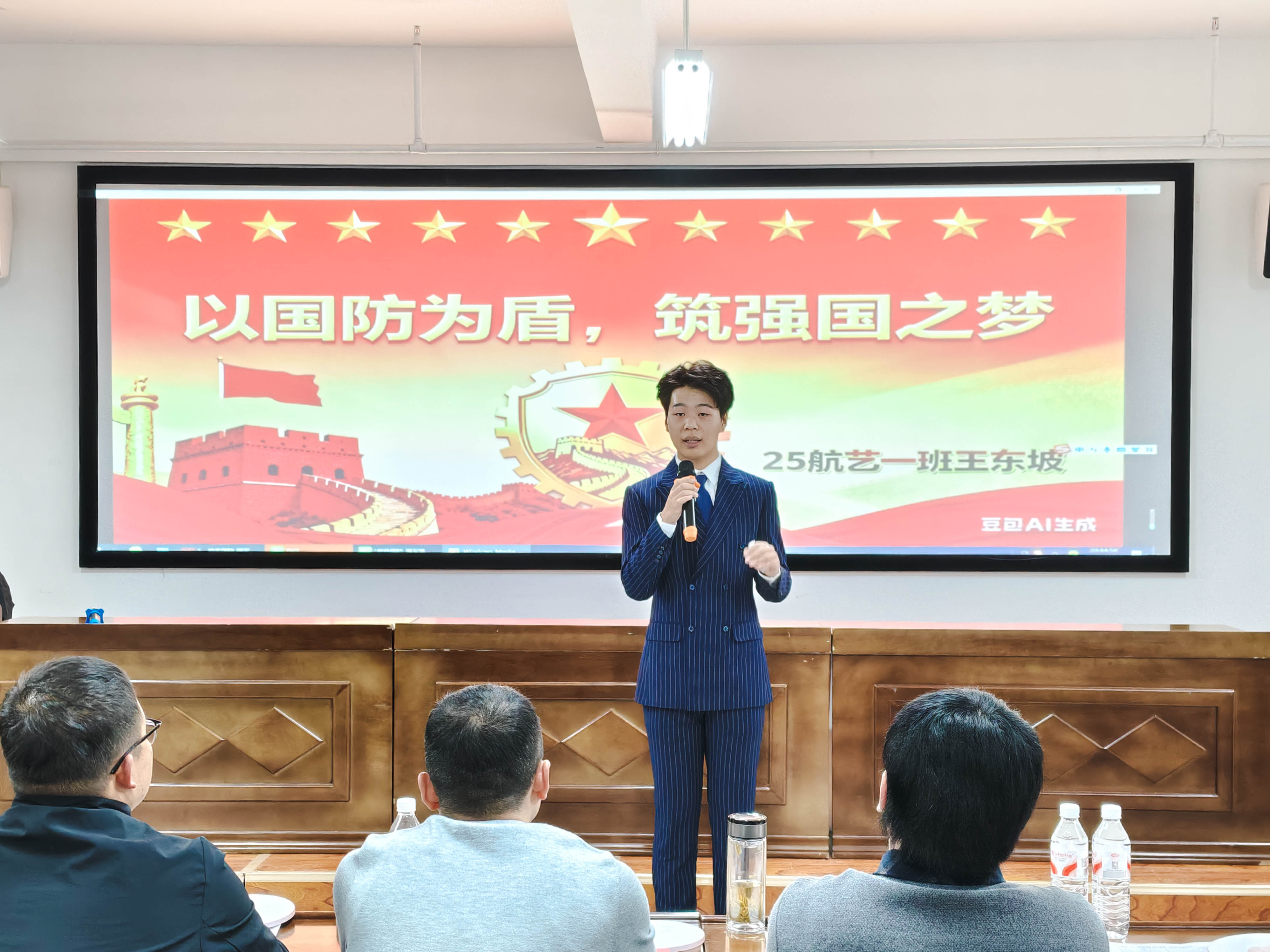 2025年11月19日晚,188BET金宝搏官网举办“爱我国防、强军筑梦”国防主题演讲比赛。党委学生工作部何超、188BET金宝搏官网蒲利利、梁逍遥、赵新帮、刘烨枞、关健、黄嘉颖七位老师担任评委,近120名本科生聆听学习。