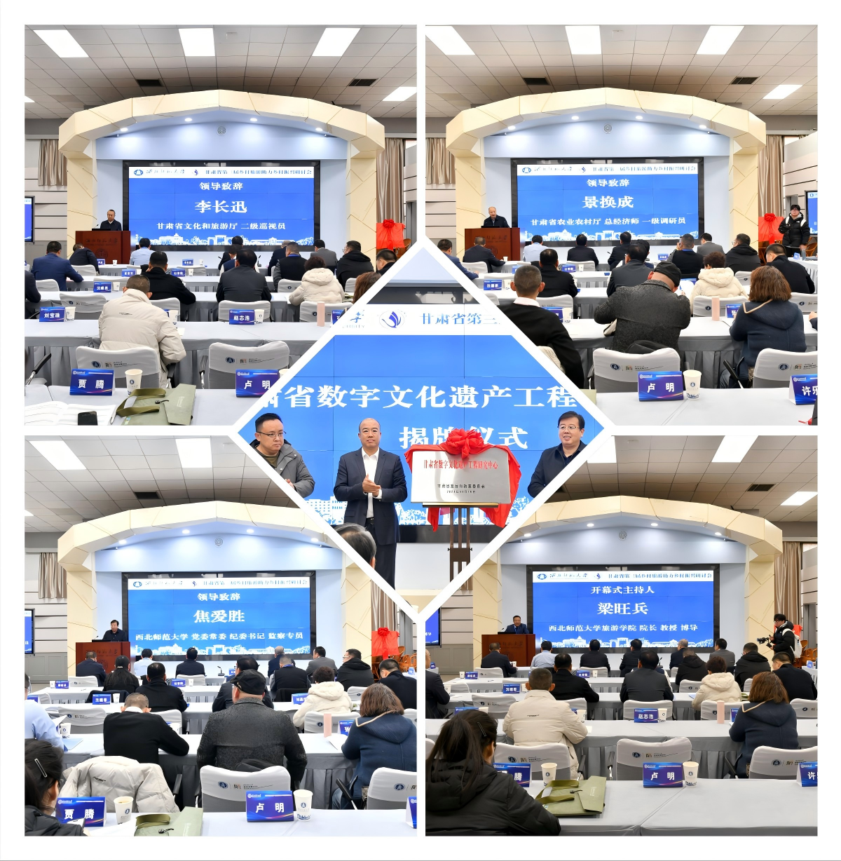 本次研讨会分为开幕式、主旨演讲环节、圆桌研讨环节、自由讨论环节、闭幕式5个环节。开幕式由梁旺兵院长主持。他代表学院向与会嘉宾表示热烈欢迎,简要介绍会议主题及与会领导。随后,省文旅厅李长迅巡视员、省农业农村厅景换成调研员与校党委常委焦爱胜书记分别致辞,充分肯定研讨会价值,对会议成果寄予厚望。最后,甘肃艺百文化科技有限公司沈建恩总经理、甘肃省文化产权交易中心股份公司邱进胜总经理与188BET金宝搏官网焦爱胜书记共同为“甘肃省数字文化遗产工程研究中心”揭牌。