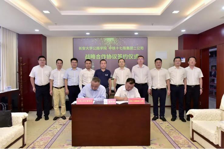双方表示将在科学技术研究、人才培养、学术交流技术服务和成果转化等方面开展深入合作,签订了《战略合作协议》,携手实现发展共赢。期间,陈建勋院长一行参观了中铁十七局二公司企业发展荣史展厅及廉洁文化警示教育厅。