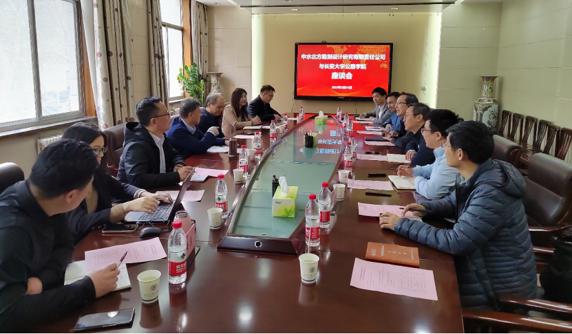 3月15日,中水北方勘测设计研究有限责任公司总经理于玉森一行7人来beat365官网座谈交流,beat365英国官方网站党委书记汪海年、党委副书记、副院长姚以亮、副院长张久鹏、韩万水、马峰等参加座谈。座谈会由姚以亮主持。