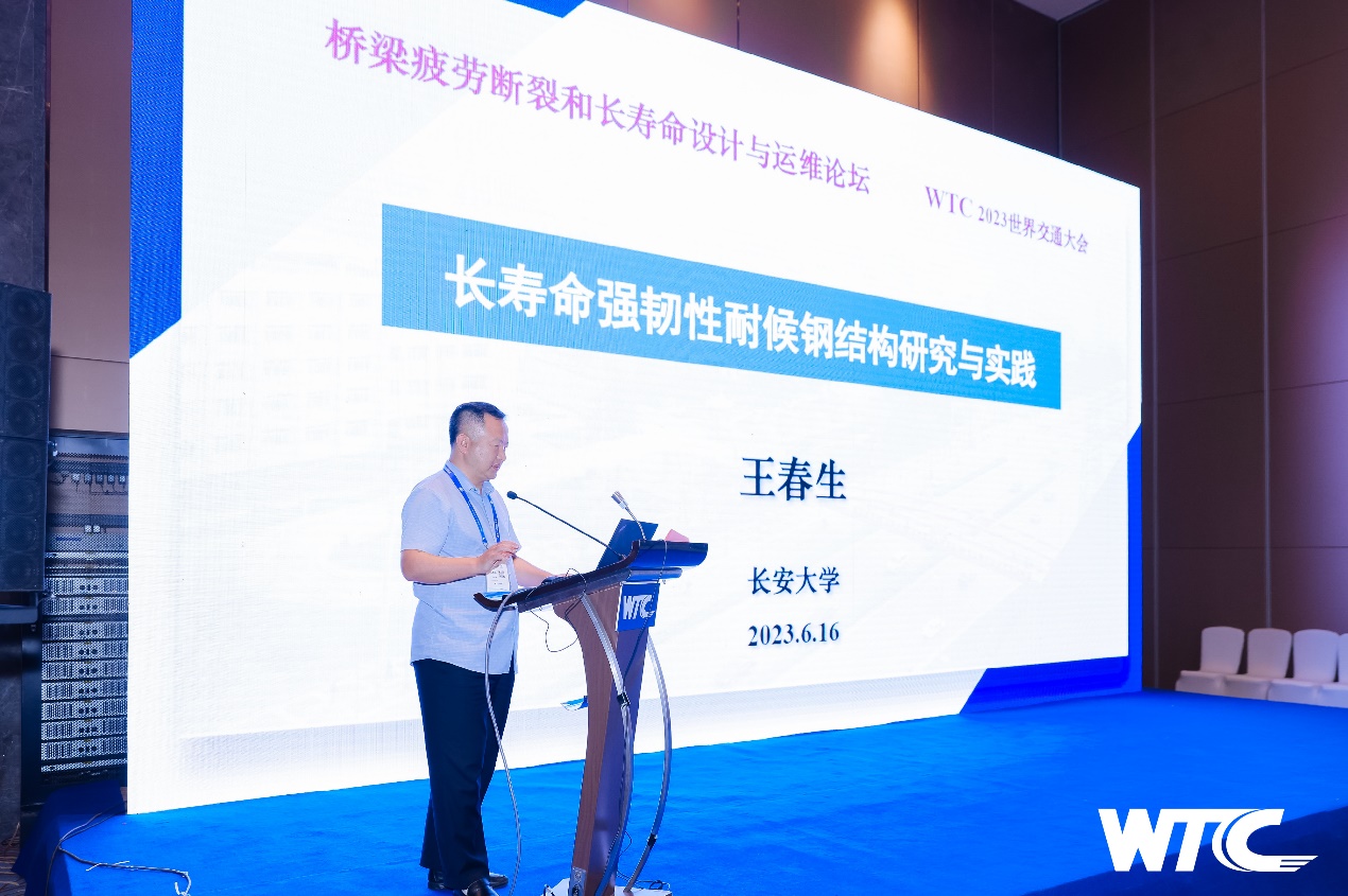 2023年6月16日下午,2023世界交通运输大会(WTC 2023)“桥梁疲劳断裂和长寿命设计与运维论坛”在湖北武汉中国光谷科技会展中心成功举办。论坛由WTC桥梁工程学部与beat365英国官方网站共同主办,主题为桥梁疲劳断裂与损伤机理、桥梁疲劳智能监测/评估与维护新技术、长寿命桥梁设计理论与智能建造,beat365英国官方网站王春生教授、苏州科技大学翟慕赛博士负责论坛前期组织、宣传和举办的相关事务。