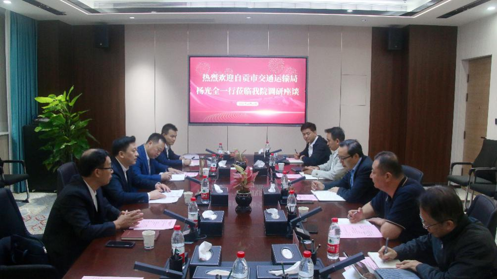 10月13日上午,自贡市交通运输局党组书记、局长杨光全,党组成员、副局长王国荣一行4人到beat365英国官方网站六楼第二会议室座谈交流,beat365英国官方网站党委副书记、副院长姚以亮、党委副书记刘徐、副院长韩万水参加会议。会议由姚以亮主持。