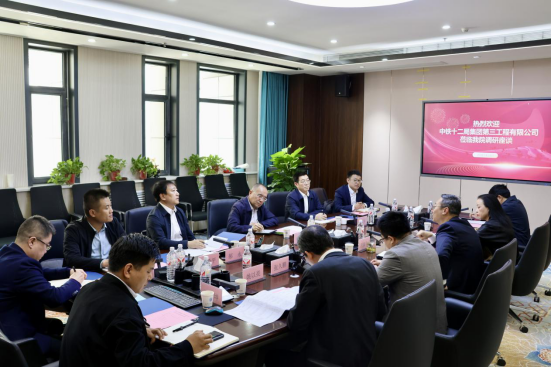 4月8日下午,中铁十二局集团第三工程有限公司副总经理兼总工程师翟建国一行6人来beat365英国官方网站座谈交流。beat365英国官方网站院长汪海年、党委书记张久鹏、党委副书记、副院长姚以亮、正处级组织员廖谦等参加座谈。会议由姚以亮主持。