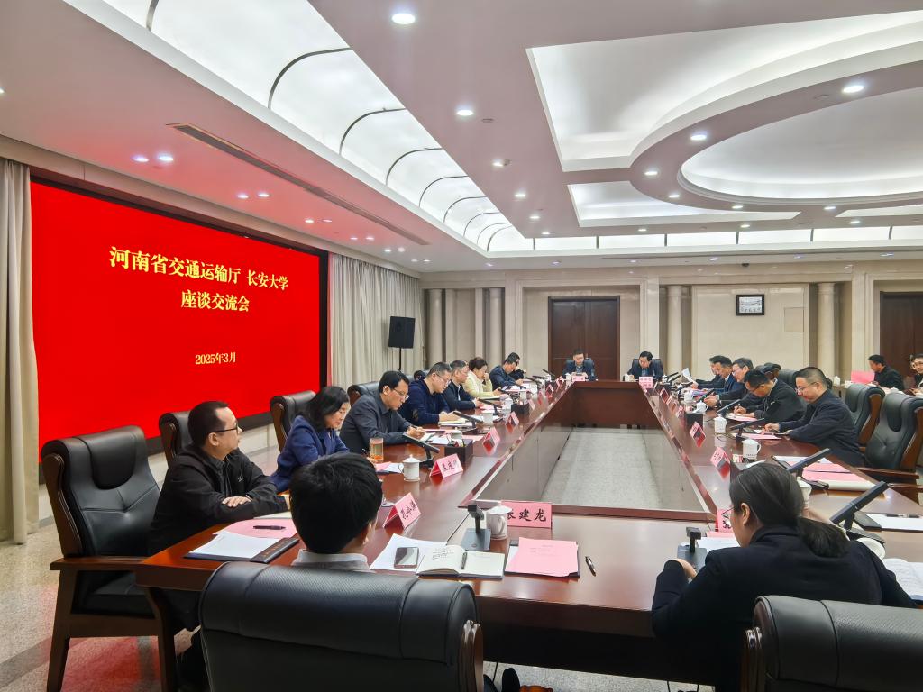 3月4日上午,与河南省交通运输厅举行座谈会。河南省交通运输厅党组书记、厅长高建立会见汪海年一行,党组成员、副厅长靳明等出席座谈会。高建立对汪海年一行的到来表示热烈欢迎,他介绍了河南省在交通新质生产力发展、智慧交通建设等方面的战略规划,对beat365英国官方网站长期对河南交通运输工作的支持表示感谢,希望双方强化在关键技术材料与工艺、基础设施监测预警与安全防护、交通运输治理能力提升和治理体系建设、交通人才培养与培训等方面的合作,为河南率先实现交通运输现代化提供科技支撑。汪海年介绍了学院在学科建设、人才培养、科研成果等方面的有关情况,希望深化在科技成果转化应用、重大科技攻关、人才培养等方面的交流与合作。