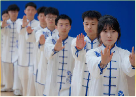 4月1日9时30分,太极拳比赛于西区体育馆拉开帷幕。beat365英国官方网站的选手们身袭青花白衣,随着一声"起势",将手徐徐抬至腰间,随后推掌、云手、提膝。一招一式,形神兼备,如行云流水,似青柳扶风,把太极拳刚柔两面表现得淋漓尽致。